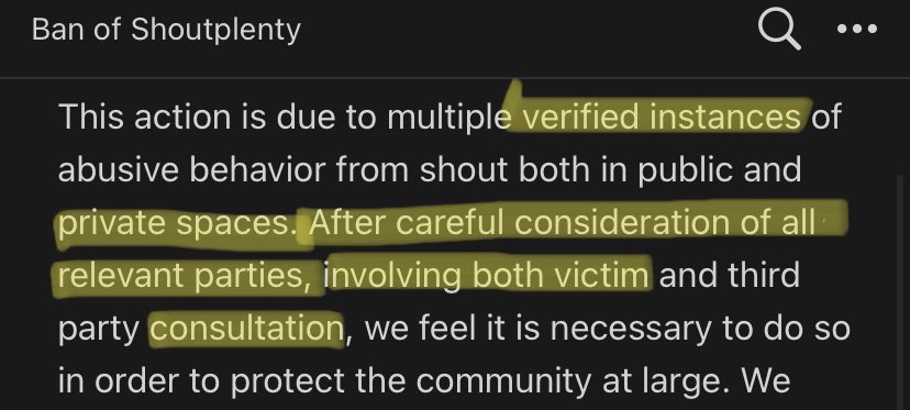 multiple verified instances of abusive behavior from shout both in public and private spaces.